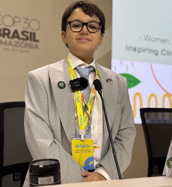 12 yaşındaki Türk öğrenci Osman Batu Sivaslıgil, 51Talk tarafından yürütülen özel seçim programı ile COP30 İklim Zirvesi’nde dünya liderlerine, diplomatlara ve uluslararası sivil toplum temsilcilerine İngilizce hitap ederek Türkiye’yi temsil etti.